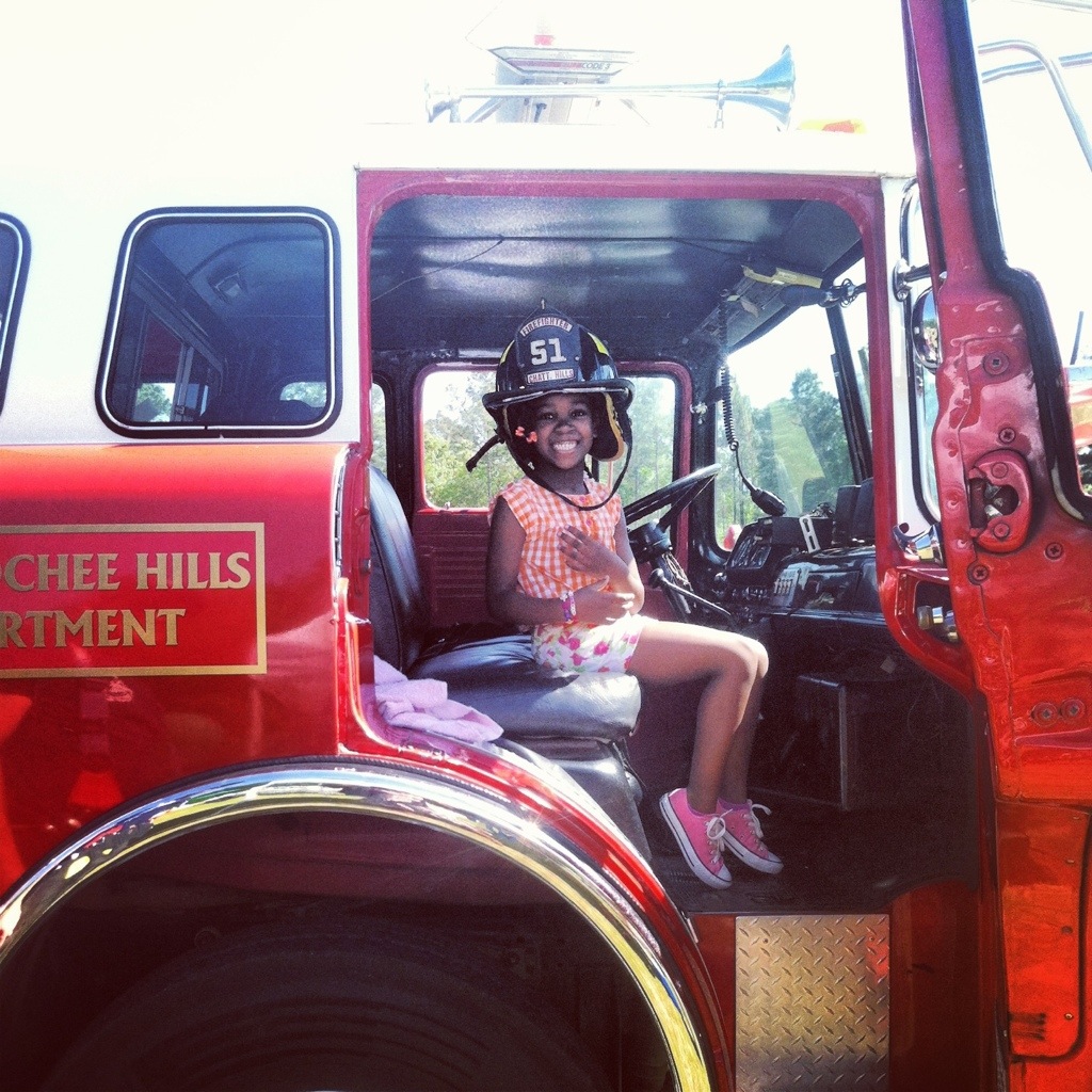 She also was able to hop in to a fire truck and look around. We were hoping to take our first ride on an hot air balloon, but the activity was cancelled due to windy conditions. Bummer.