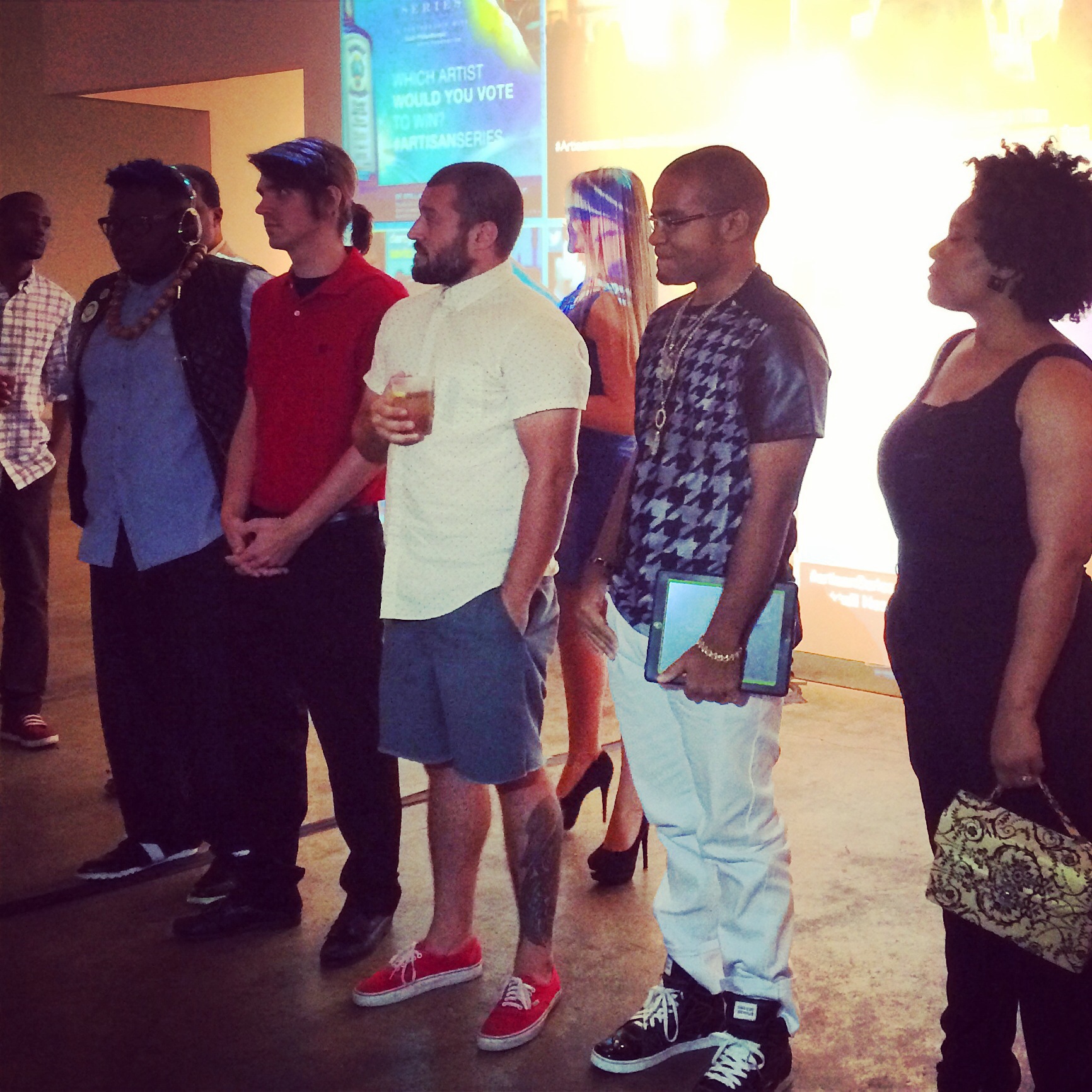 Last week I attended the Bombay Sapphire’s Artisan Series Event at Mason Murer Fine Art. The series is a showcase of emerging artists chosen from online submissions and local art gallery events. After votes have been tallied, Grand Finale Winner will receive a solo show at SCOPE NYC in March 2015. The Atlanta stop was part of the regional finals. The finalist included : Mike Black, Damian Bradley, Barry Duperon, Angela Davis Johnson, Fabian Williams, and Janine Monroe. The art was absolutely amazing. Go to BombayArtisan.com for more information about the series and artist.