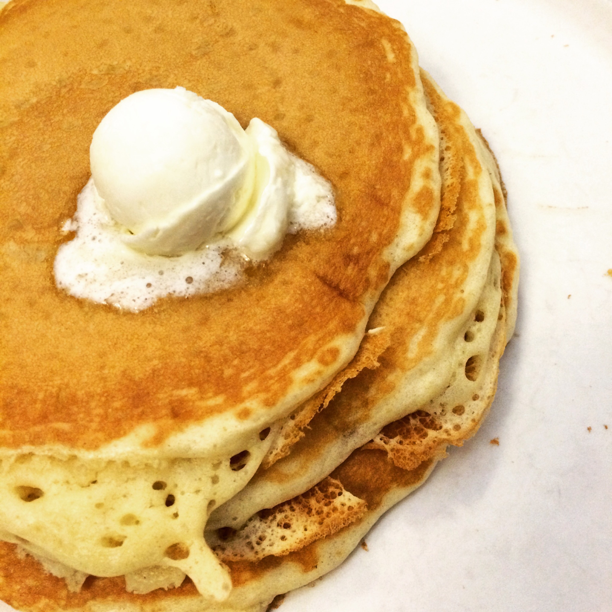 Very quickly we decided what we wanted to accompany our pancakes before the waiter came back. A few minutes later, Yvette, our waiter for this visit came to take our order. She was very nice and pleasant. I later witnessed her deal with a slightly irate guest with much class and professionalism. High five Yvette! She took our order to include turkey bacon, scrambled eggs, and hash browns. Not long after that we were eating. Everything was tasty!