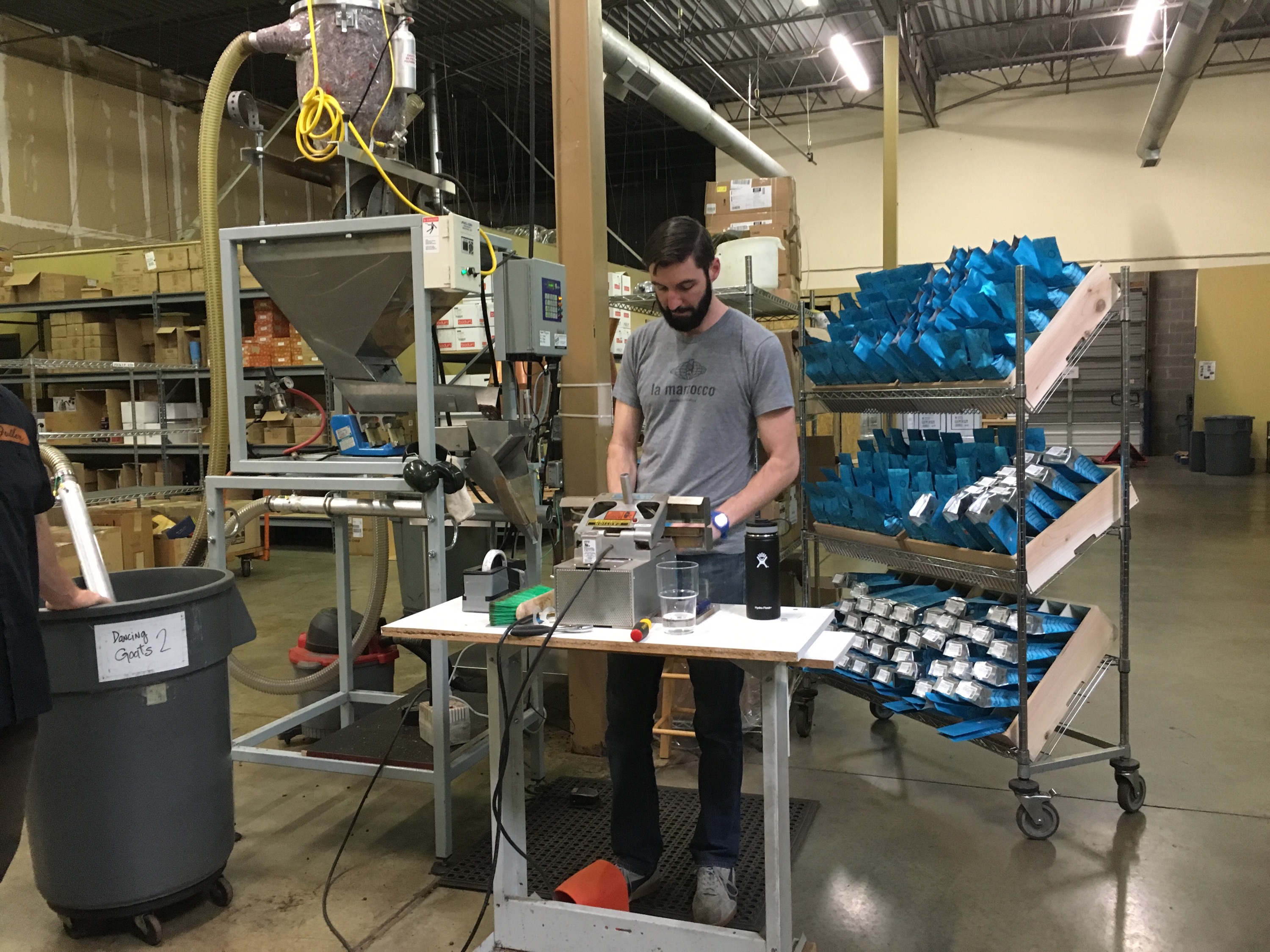 Now they are ready to be filled for orders. What’s interesting is that all the coffee bags are filled individually, by hand. There were only like 5 people there running the operation the whole time. And everyone seemed so chill and relaxed. Seems like a fantastic place to work. After being packaged, they are then ready to be shipped to various restaurants and coffee shops around Atlanta. My favorite place yo enjoy a cup of Bardorf & Bronson coffee is at The Dancing Goats Coffee Bar. They have a great outside seating area, perfect for sipping coffee.