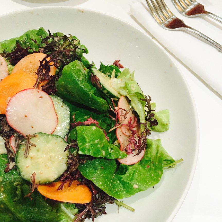 spring salad red watercress, spring vegetables, house farmer’s cheese, roasted strawberry vinaigrette, spiced sunflower seeds