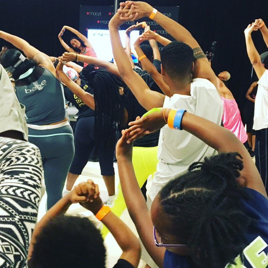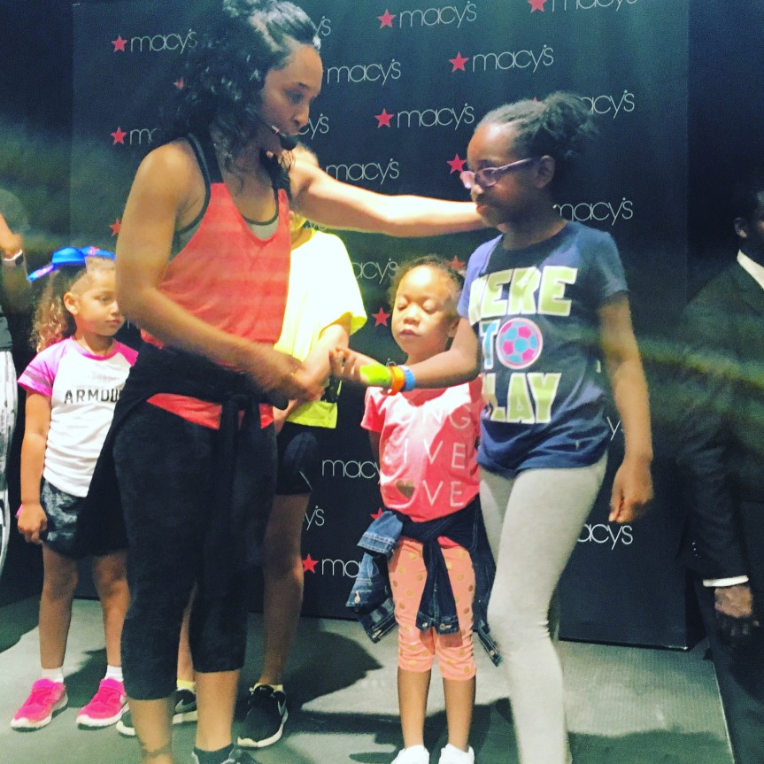 Saturday was the beginning of a awesome weekend full of fun activities. We started the morning with a workout with Chilli. You know, Chilli from TLC! She has teamed up with super trainer, Shaun T, for a fun dance workout video to get you moving. The video also features music by Chilli including her new single, Body. Diehard TLC fans gathered at Macy’s to sweat out and learn a few dance moves. It was really fun!