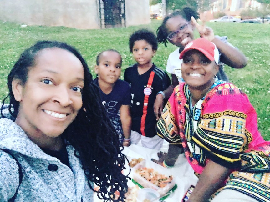 Next on the agenda was a quick picnic because it was National Picnic Day! We laid out a blanket and had some tofu salad and pizza! Yum!