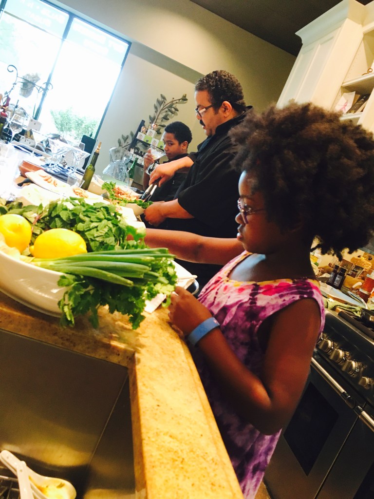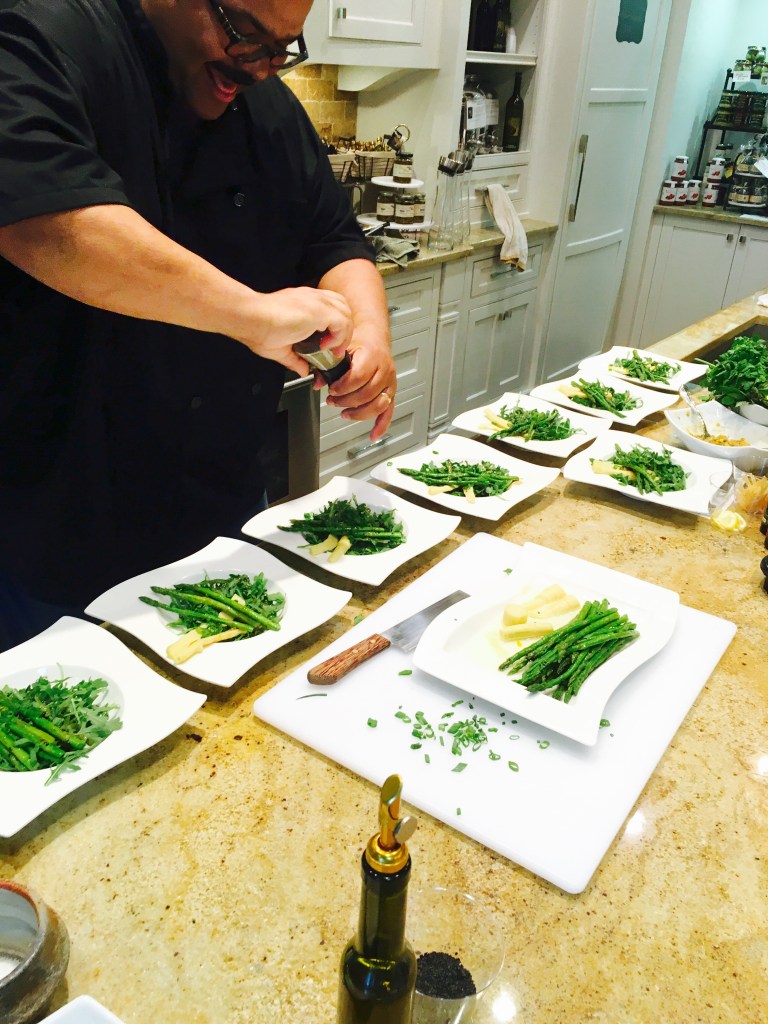 Shortly after taking our first delicious bite, Chef Montier asked my daughter if she could assist him in the kitchen. She dropped everything and very swiftly and with a huge smile joined him behind the counter. With this gesture, Chef Montier gained a lifetime fan. Of course it did help that his food was amazing! Also assisting in this grand feast was his wife, Judith, and son, Austin. It was a family effort and it was beautiful to watch. Come with me as I reminisce about Chez Montier’s Spring Media Dinner.