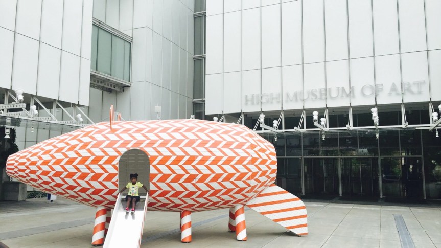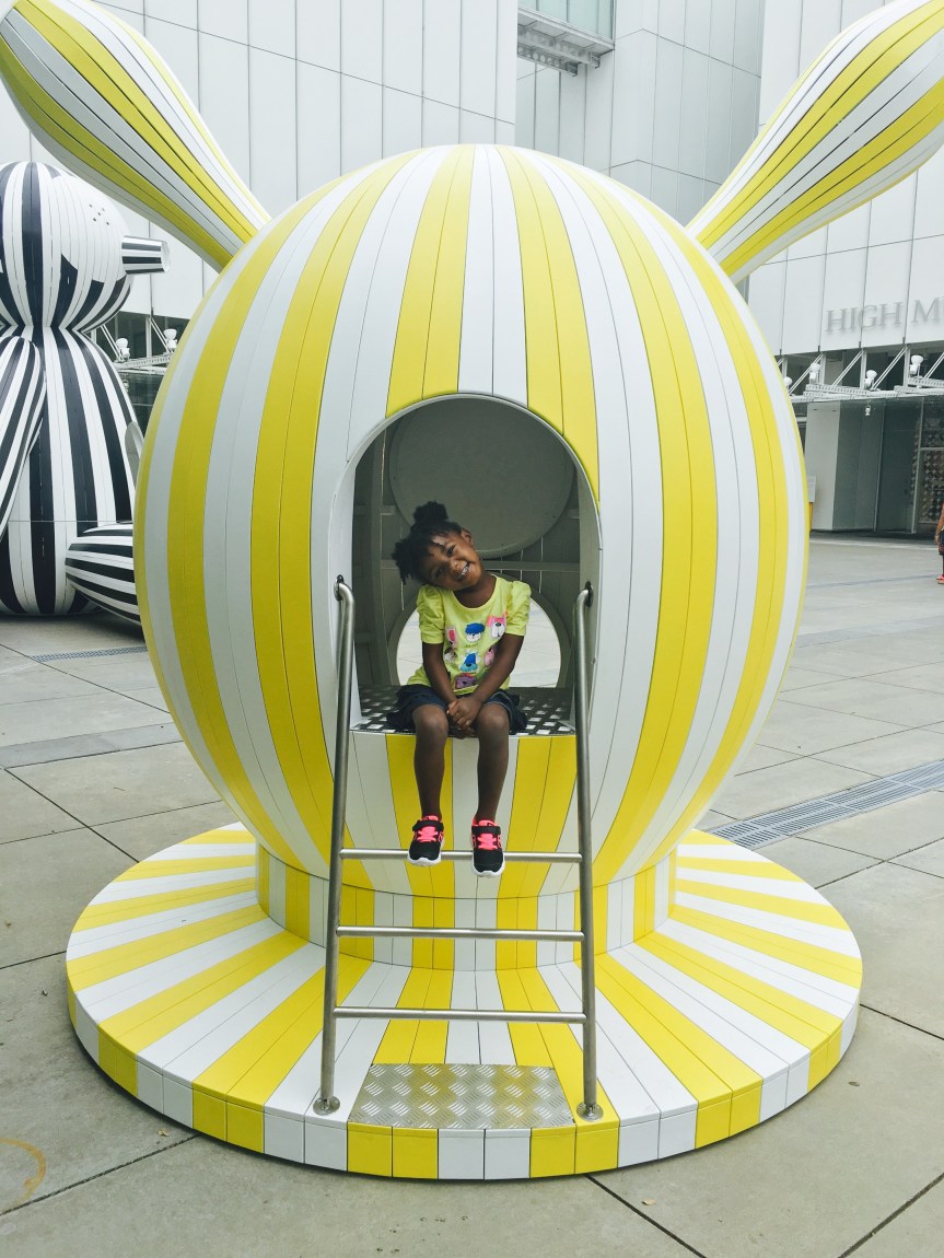 Today I took the girls to the High Museum of Art to visit the new Tiovivo exhibit by Jaime Hayon. I came by here last week to check it out and just had to bring the girls back. I just love how playful and whimsical each sculpture is. And it’s interactive!! The girls LOVED it! I mean really what is not to love about these sculptures? Be sure to stop by the High Museum of Art this Sunday for Family Free Day!