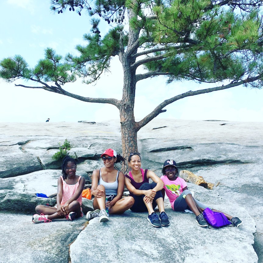 Stone Mountain, located in Stone Mountain Park, is 825 feet above the surrounding area, reaching an elevation of 1686 feet. The walking trail is only 1 mile up but add the incline and rock climbing and you have full body workout. It was hard but it felt really good. It was also really hot. Which kind of made it unbearable. But we pushed through! And made it to the top!