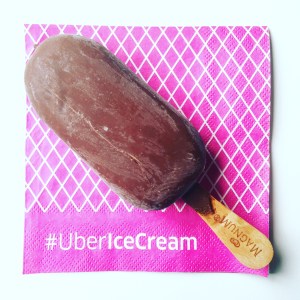 Yesterday, I got some pretty cool news. As a VIP rider with Uber, I had the opportunity to get a very sweet treat today. Free Ice Cream!! Delivered right to me. All I had to do is pull up my UberEats app, request my ice cream, and wait till it arrived!! I chose a Double Caramel Bar from Magnum. When the Uber driver arrived her vehicle had frozen treats all over it. Fun!
