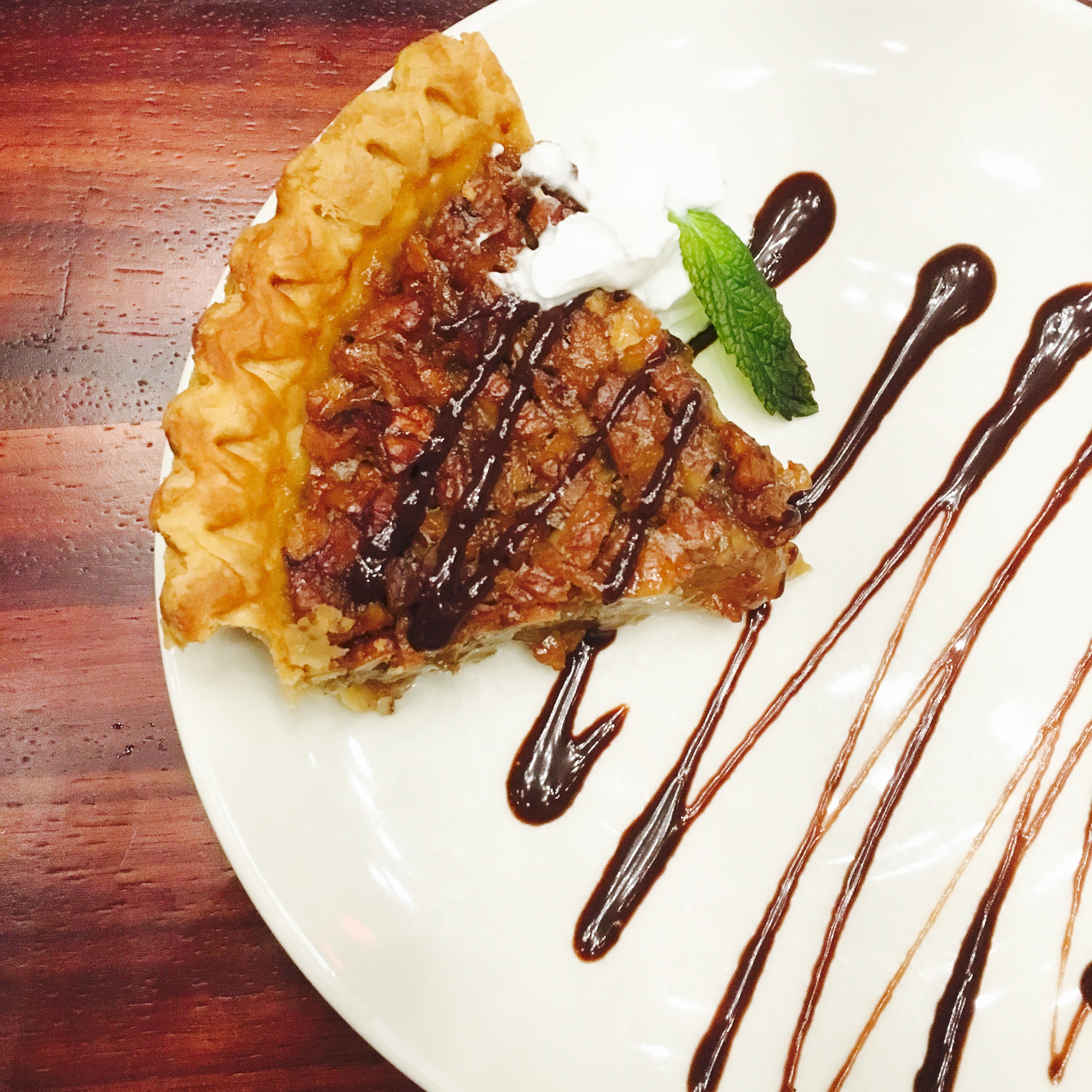 Brown Butter Pecan Pie with Dark Chocolate Sauce