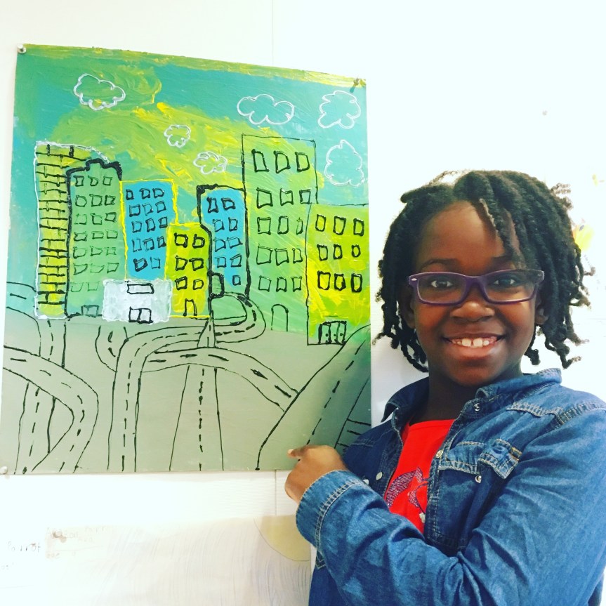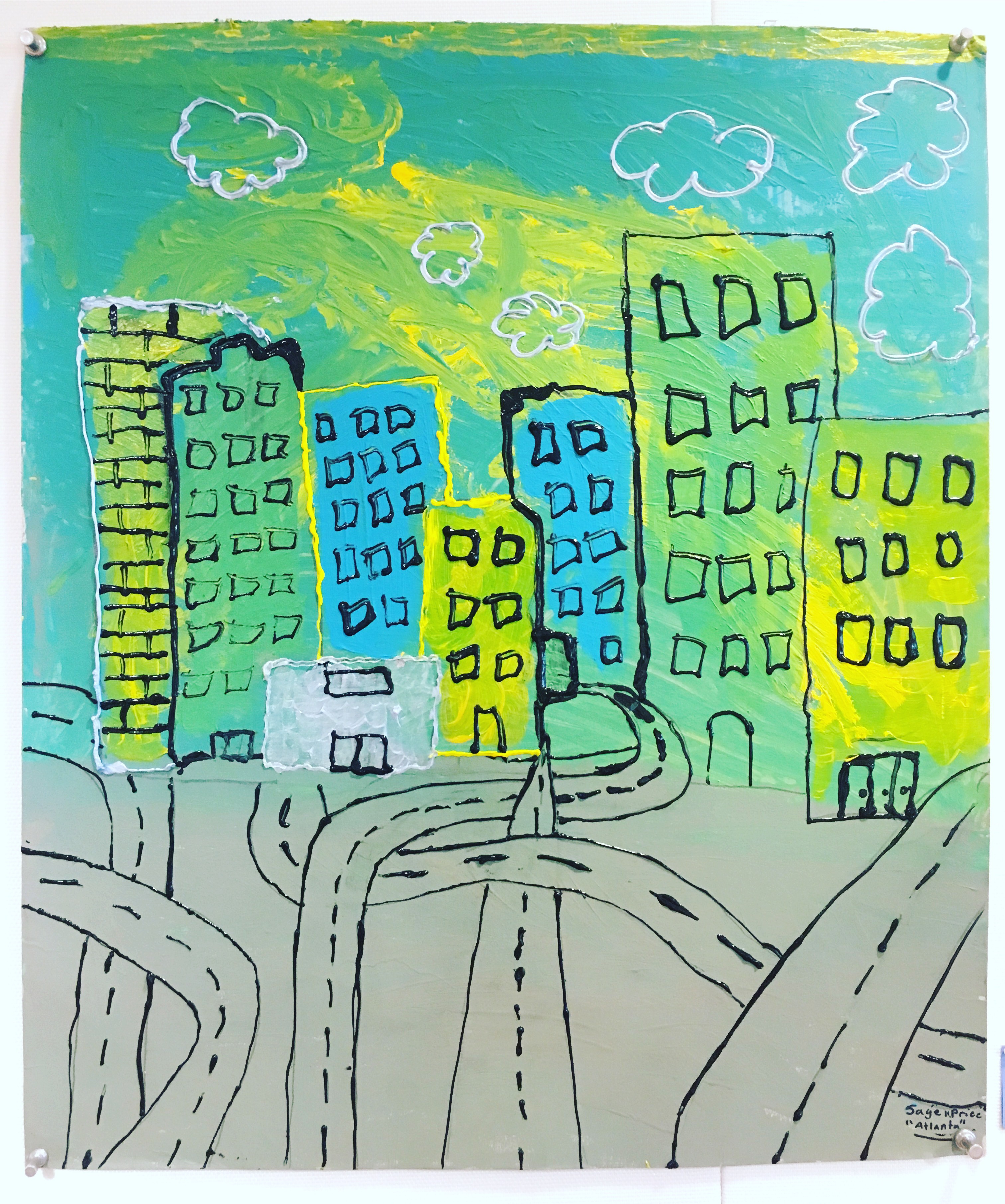 I have some really awesome news!! My beautiful daughter, Sage, currently has a painting hanging in the High Museum of Art. Yay!! Students grades K-12 were invited to participate in the High’s first Student Pop-Up Show. Sage immediatly wanted to be a part of it. She got all of her art supplies out and went to work. She created a piece she entitled “ATLANTA”. It’s so awesome!