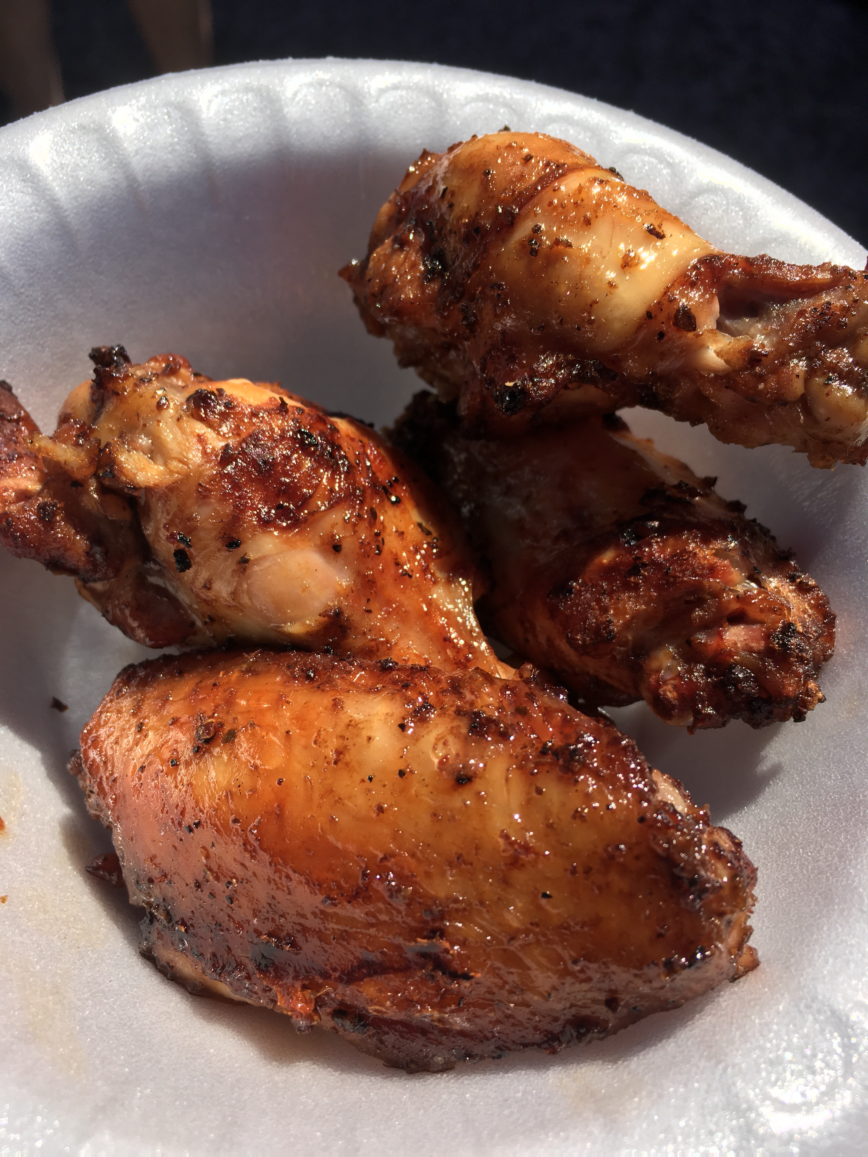 Eggtoberfest, held this Saturday at Stone Mountain Park, is a day celebrating the Egghead community and their culinary creativity using the Big Green Egg. There was a lot to taste! We hardly knew where to start. I started off with these super tasty wings. The seasoning on them were just perfect. I probably ate about 7 of them. I gave them my vote.