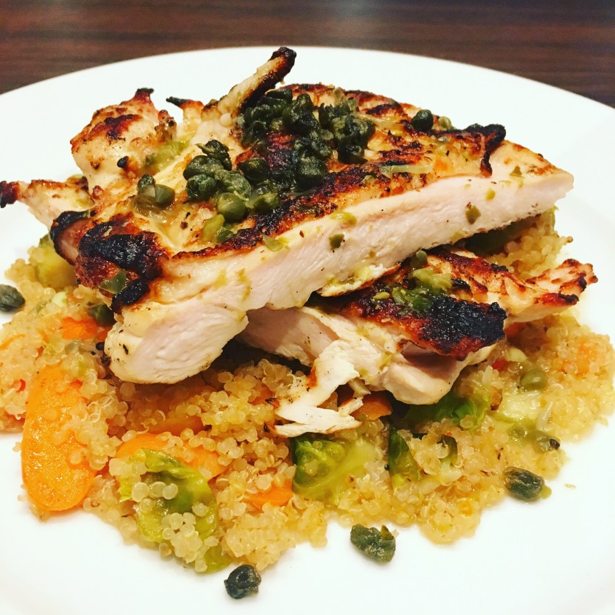 Next up! Grilled Chicken Paillard with Sautéed Quinoa Pikaf with Seared Brussel Sprouts, Baby Carrots, Shaved Asparagus, Grape Tomato, and Caper Piccata. I loved the combination of the flavors. A really great dish.