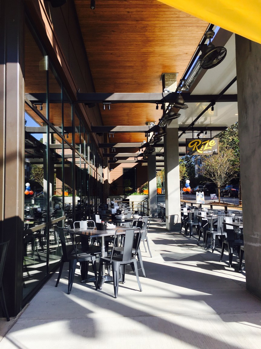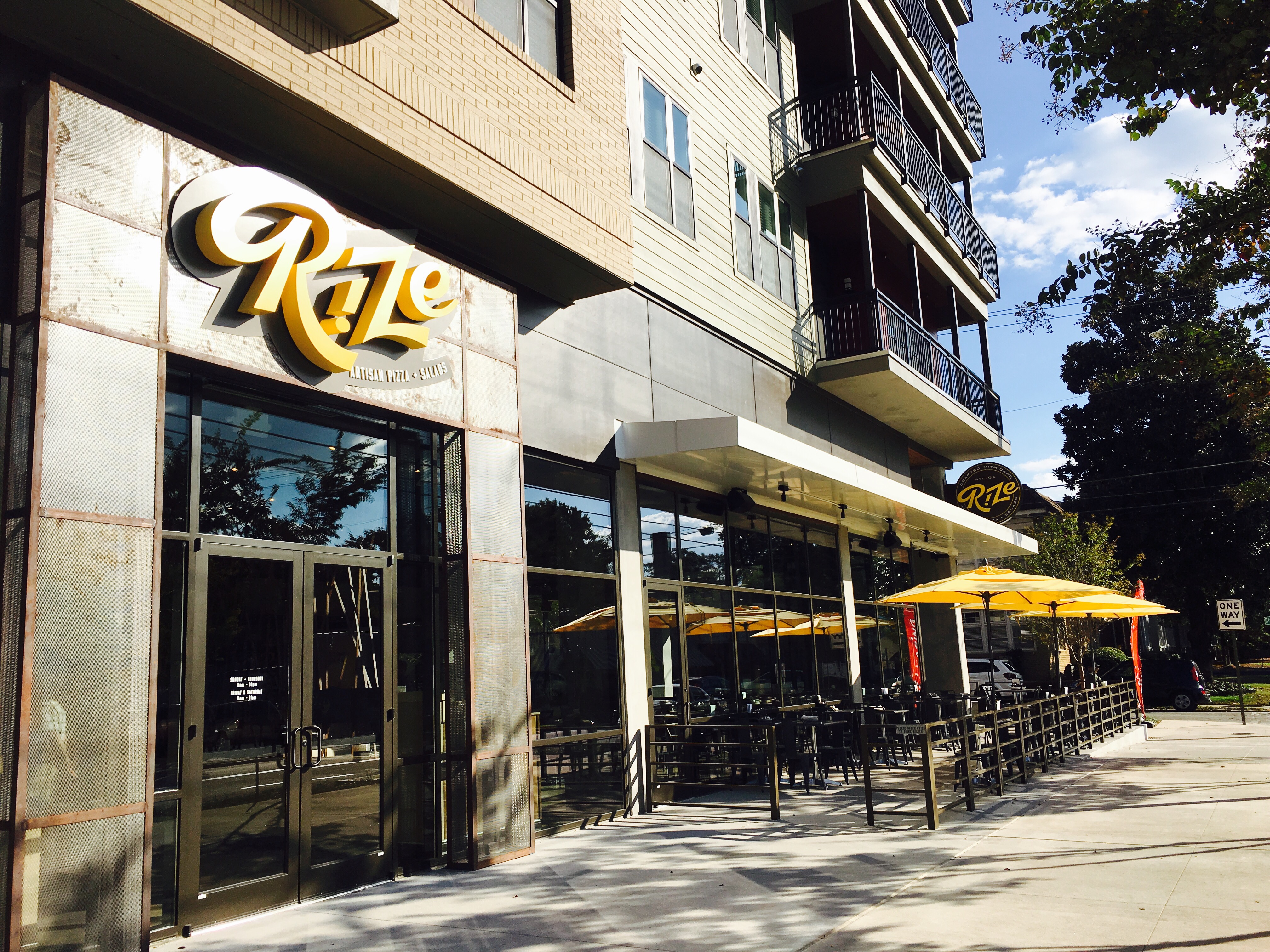 This Monday, Rize Artisan Pizza + Salads will officially open their doors for business in Atlanta. Yesterday, I had the opportunity to attend their Friends & Family Dinner for an exclusive preview of the menu. Located in the bustling Poncey-Highlands area, it immediately catches your eye with its huge outside eating area wrapping around it exterior.