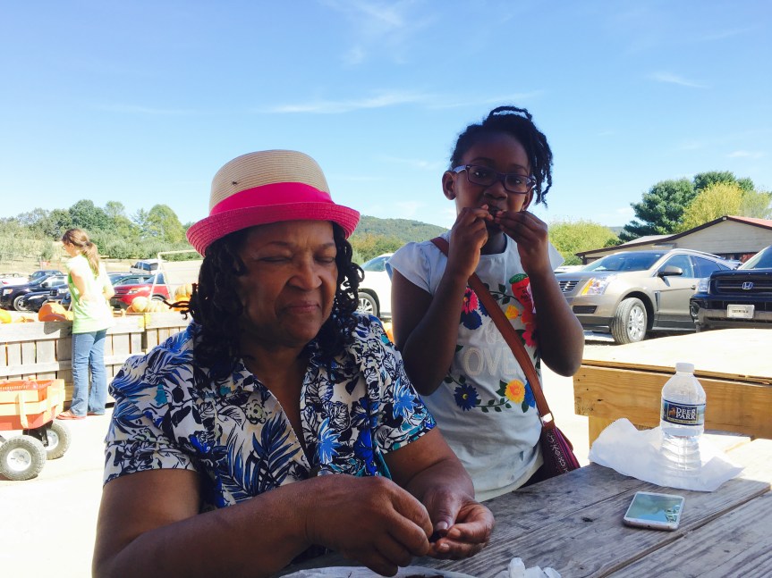 On this visit we were able to take a trip up to Elijay, Ga. Our destination, B.J. Reece Apple Orchards. Yes! It’s apple picking season! When I was a kid, every fall my parents would take my brother and I apple picking. We would return home with a bushel of delicious freshly picked apples. With these apples, my mother would make everything under the sun. There’s nothing like an apple pie made with fresh apples straight from the orchard. Mmmm. My favorite time of the year!