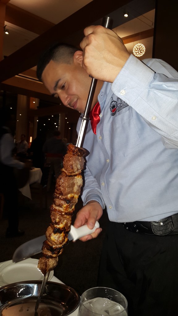 Back inside we took in the sights while sipping on our fabulous cocktails. At 6:30 our table was ready. We were led to our seats, where Josh introduced himself as our waiter for the night. Josh informed us that he was there to guide us through this amazing Southern Brazilian culinary experience. He also said that if we needed anything, that we could ask anyone and they would be happy to assist because they worked as a family. I was totally impressed at this point.
