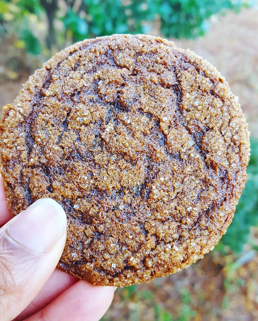5. Preheat oven to 325f.. Place the chilled balls of dough onto a parchment or silicone lined baking sheet, spacing them at least 1.5 inches apart. Bake on the middle rack for 10-12 minutes, or until the surface begins to crack – for a crispier cookie, bake a few minutes longer. Let the cookies cool 3-4 minutes before transferring to a wire rack. Once completely cool, cookies can be stored in a baggie or you can eat them all up!