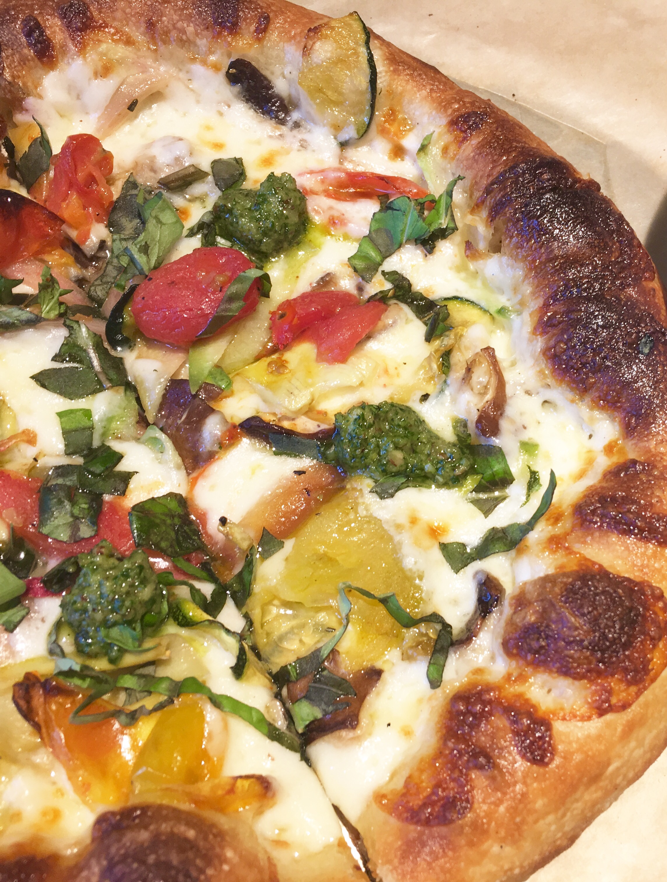 I attended the Friends & Family Lunch Event yesterday and once again was blown away. I brought along fellow blogger friend, Amber of Sippin’ in the Atl, to share the delicious experience. Rize sits on the corner of Roswell Road & Hammond Drive under the brand new residential living apartments, Square One. When we arrived we were warmly greeted and given the instructions on how to order. The hard part was choosing which pizza to get. Every single menu item sounded and is amazing. I personally have had all of them, so it was extra difficult for me to choose. I finally decided on the Garden Pizza and the Pear & Walnut Salad. I also ordered a cup of Sweet Peach Tea. Amber ordered the Waverly, as well as the Pear & Walnut Salad and a cup of Black Berry with Tarragon Soda.