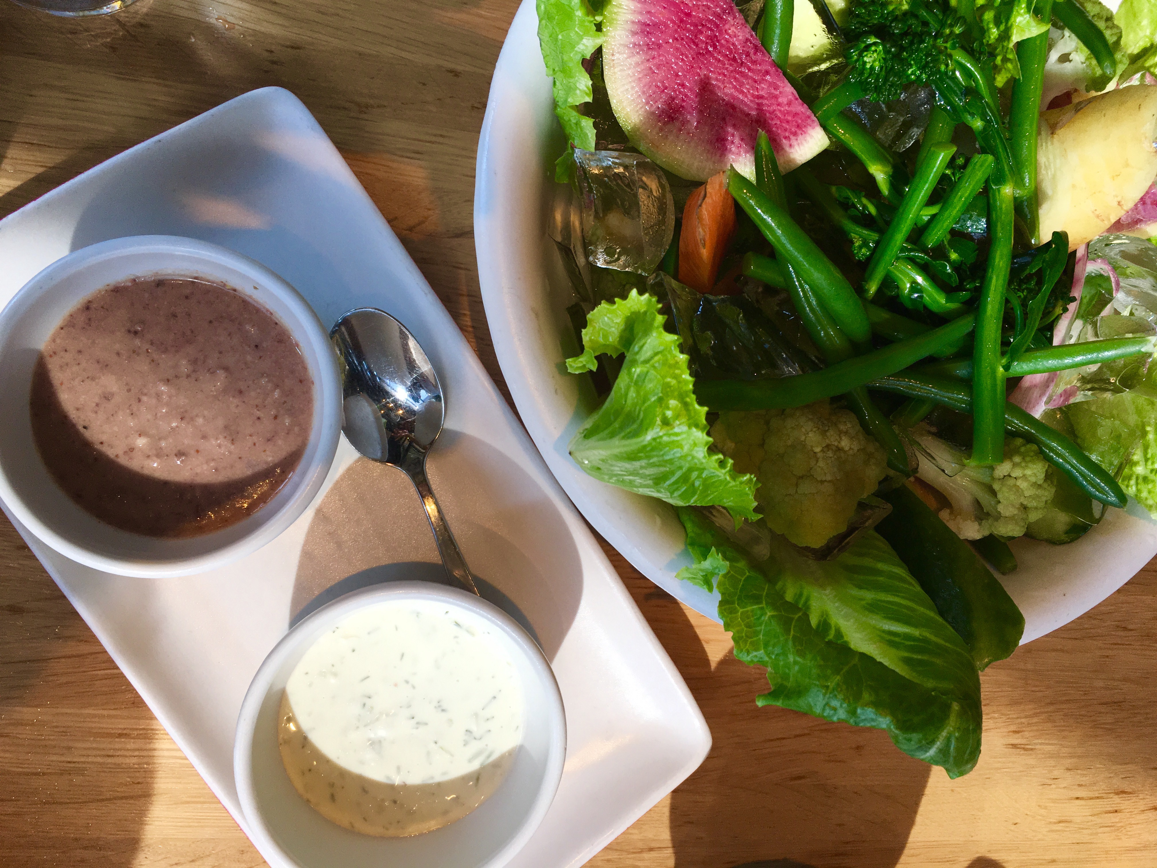 Next up was the Farmer’s Market Crudités. When our waitress brought it out, our eyes got so big. It was beautiful! Amazing how a bowl of fresh raw vegetables with dip can get you so excited. I was more than pleased with this selection. We also had the Edamame Dumplings, which was basically devoured by my daughter. She loved it!