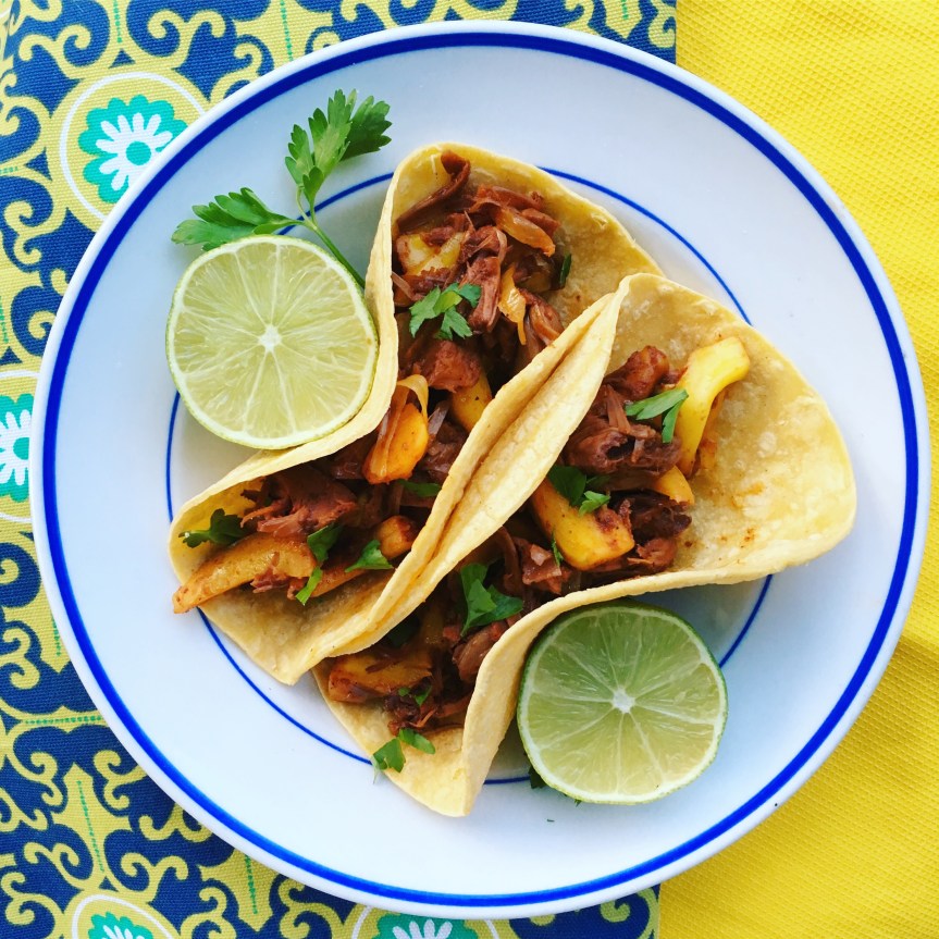 I ended the first day of my Vegan for a Week challenge with an oh so delicious Jackfruit Taco. Yummy! If you have never had Jackfruit before you have been missing out! It’s soooo good! While I was at Meijers the other day, I found a company called The Jackfruit Company. They had several flavors of Jackfruit. It was hard to choose. I went with the Tex-Mex Jackfruit. Awesome choice I must say. I also add some fresh Jackfruit pods to it when I warmed it up. Very tasty. Once done I put the mixture on a corn tortilla, squeezed a bit of lime juice on top and devoured it. It was so good!