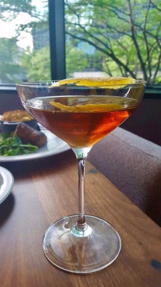 9OZ BISTRO STEAK WHITE CHEDDAR MAC & CHEESE, FOIE & TALLOW BUTTER CRUSTTORONTO ~ CANADIAN RYE, FERNET BRANCA, SIMPLE, ANGOSTURA BITTERS, ORANGE EXPRESSION GARNISHNext to arrive to the table was a stunning 8oz Bistro Steak served with a delicious White Cheese Mac & Cheese. Let’s just start with the steak. So tender. So Juicy. So much flavor! It was wonderful. The Mac & Cheese was very tasty as well. I loved that it was served in this cute little cast iron ramekin. Our lovely waitress, Kristin, asked if wanted another cocktail. Yes, of course! I couldn’t decide, so I asked Kristin to surprise me. She returned with The Toronto. And she was correct in thinking I would love it, because I absolutely did. This round of food and cocktails made me an official fan of Brim House. It made me extremly excited for the city of Toledo.