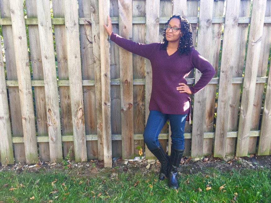 I chose something from their collection that spoke to my personal fall style. I love a great pair of jeans and a nice cozy sweater! It’s pretty much my fall uniform. I have tons of both, but you never can have enough. Right? I selected the Deedra Sweater Tunic in Dark Plum and pair of Kara Jeans in Indigo.