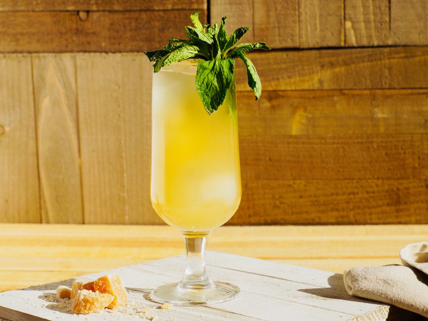 In a cocktail shaker muddle the crystallized Ginger and Honey syrup. Add Coopers’ Craft Bourbon and fill with ice, shake for 15 seconds until chilled. Strain into Ice filled Collins Glass, top with Grapefruit Seltzer and two dashes of bitters. Garnish with mint sprig and serve with a straw.