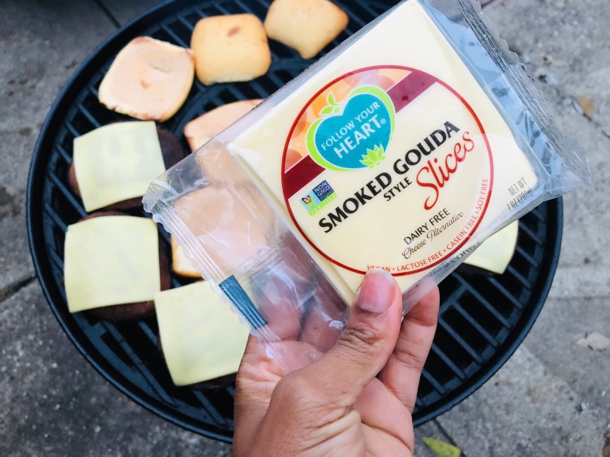 Follow Your Heart Smoked Gouda Style Slices VeganWhat’s even more exciting is that I just got a special delivery from the good people at Follow Your Heart. They hooked me up with some amazing vegan cheese alternatives. I thought that Smoked Gouda Style Slices would be perfect for this burger. And it was! It melted perfectly and tasted much like the dairy version. Mmmmmm. I can’t wait to make this again!