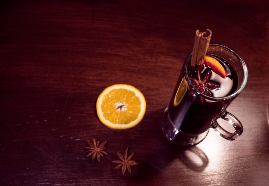 Directions: Mix ingredients and place in glass. Top with hot water and garnish with orange wheel and star anise.