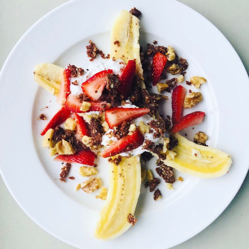 Who doesn’t love a delicious banana split? I know I do! While taking the #RawVeganChallenge, I decided to make a raw vegan version of the classic treat. Instead of ice cream, I used whipped coconut cream, which is a mixture of coconut cream and raw agave. For the toppings, I used some fresh strawberries and walnuts. I also crumbled up some raw vegan brownies on top to elevate it at bit. What’s awesome about this recipe is that it’s totally customizable. I’ve used blueberries, pineapples, mango, pecan, pumpkin seeds, the list is deliciously endless.