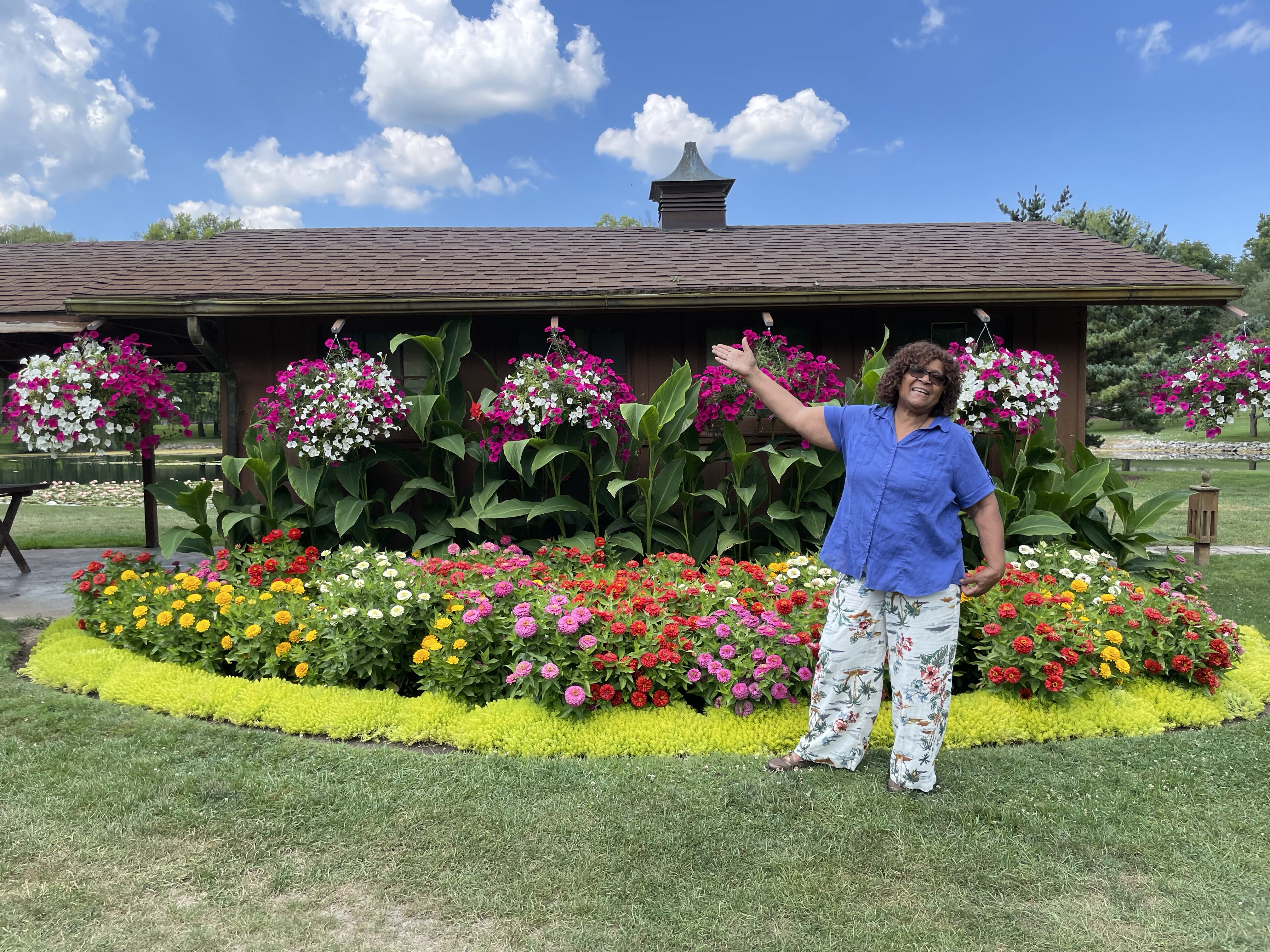 We started our day at the Schedel Arboretum & Gardens. Mom loves anything that has to do with plants and flowers. This was the perfect place for her to visit. Before even entering through the property gates we were greeted with the site of beautiful floral landscaping. Beautiful flowers lined the pathway leading to the welcome center as well. We knew this was going to be an amazing experience.