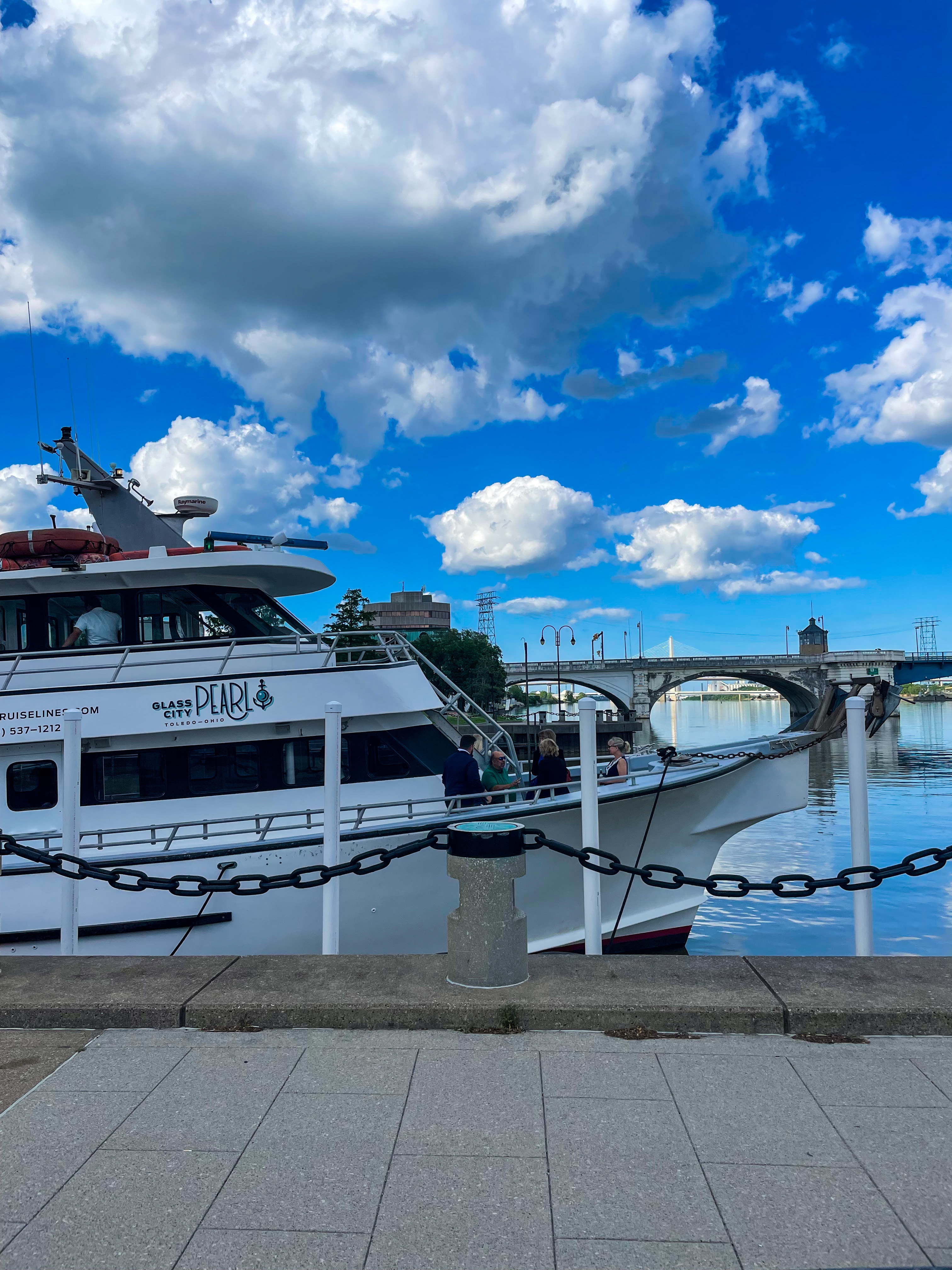 After a nice cruise out to Lake Erie, the Glass City Pearl headed back to downtown Toledo. It was a wonderful experience. For more information about the Harbor Lighthouse Cruise and other cruises available, visit https://www.jmcruiselines.com/glass-city-pearl.