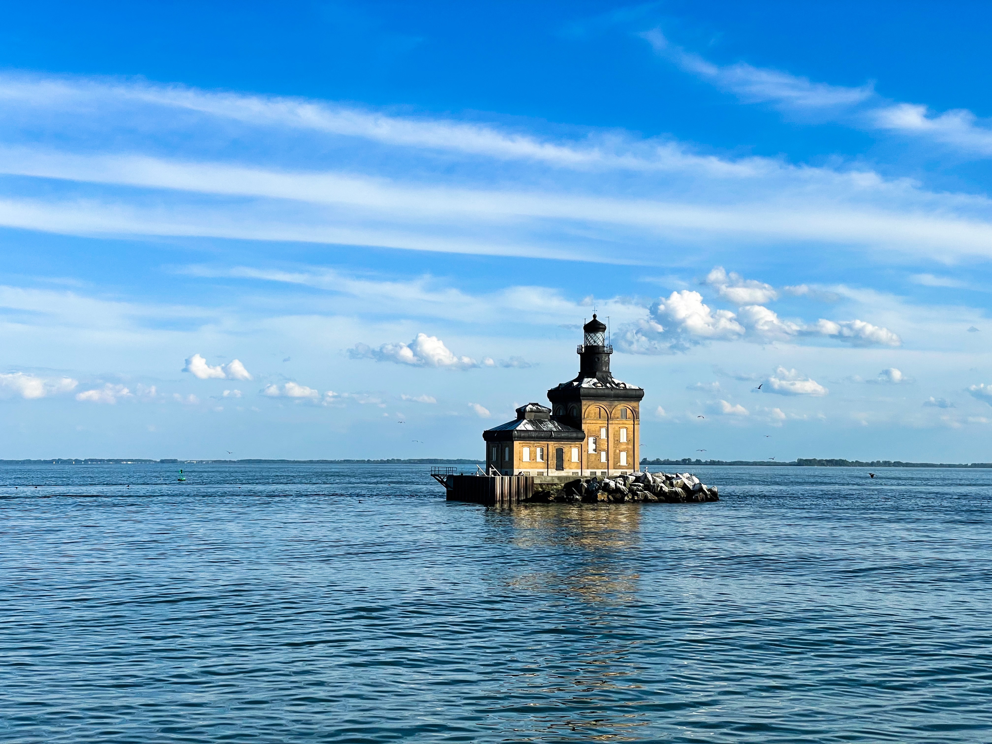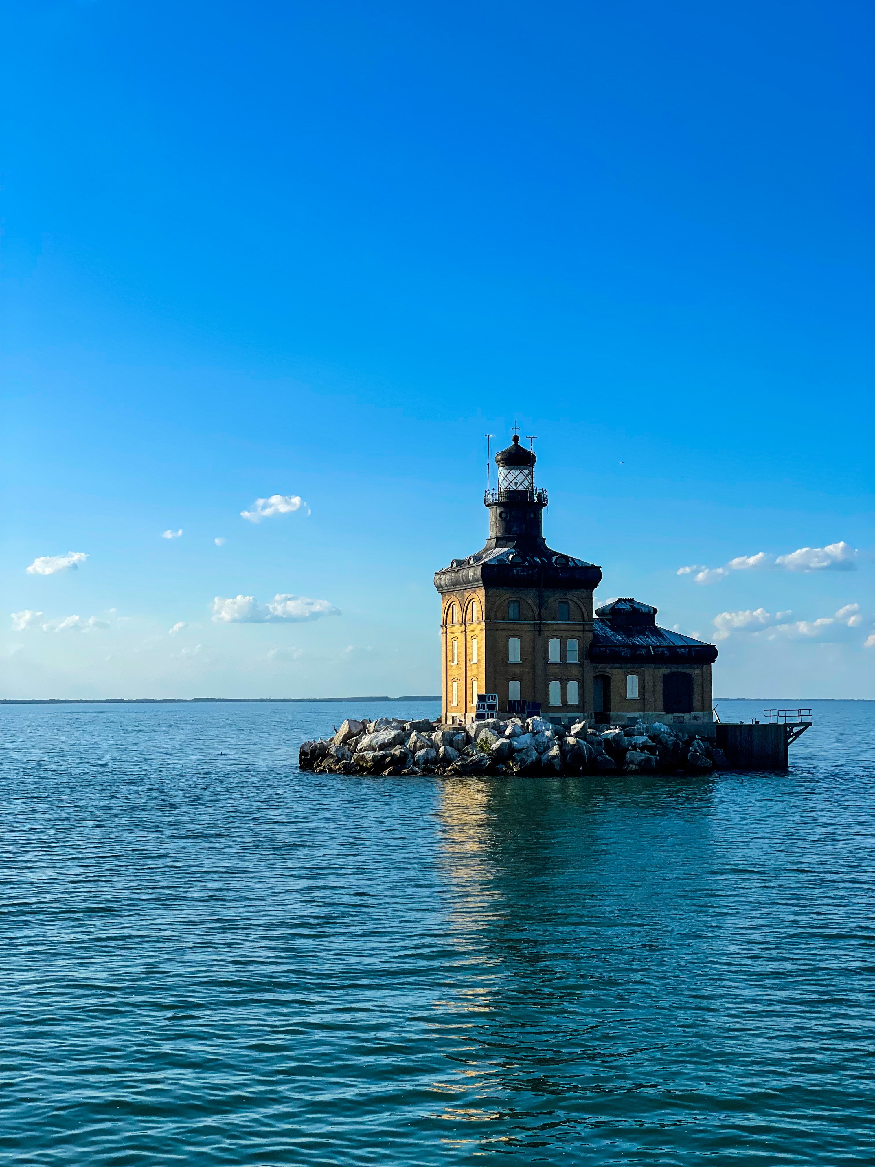 Not long after entering Lake Erie, you’ll see the Toledo Harbor Lighthouse. The lighthouse marks the entrance to the Toledo Shipping Channel where Lake Erie and Maumee Bay meet. Back in 1897, the increase in shipping to the Port of Toledo caused a need for a new lighthouse. In 1901, construction began on the Toledo Harbor Lighthouse. To read more about the history of the Toledo Harbor Lighthouse visit http://www.toledoharborlighthouse.org/history.html.