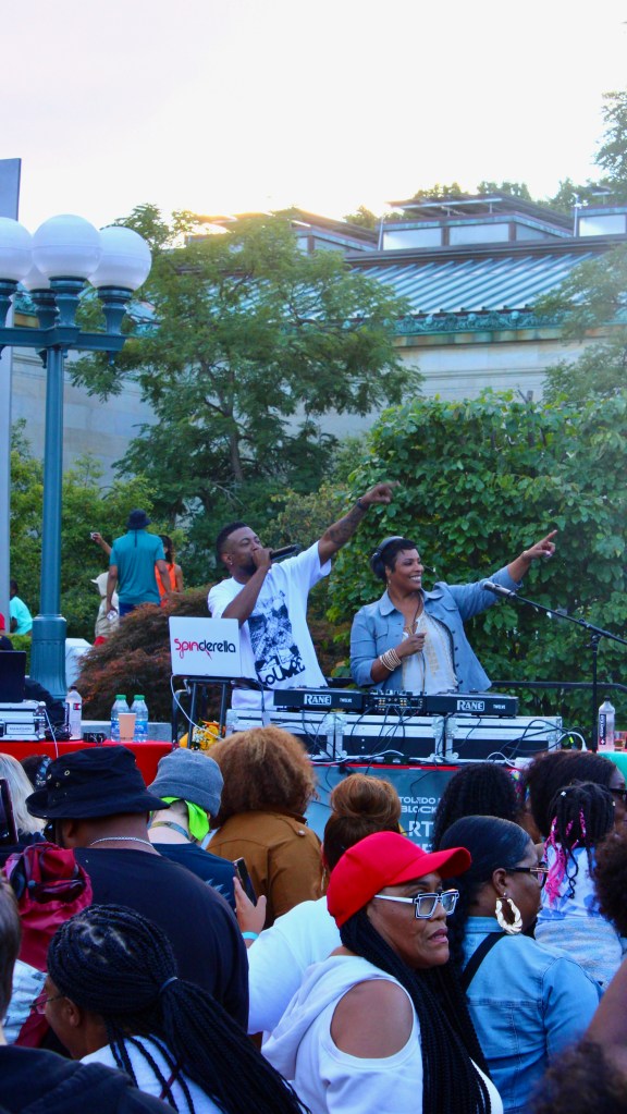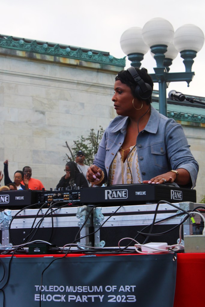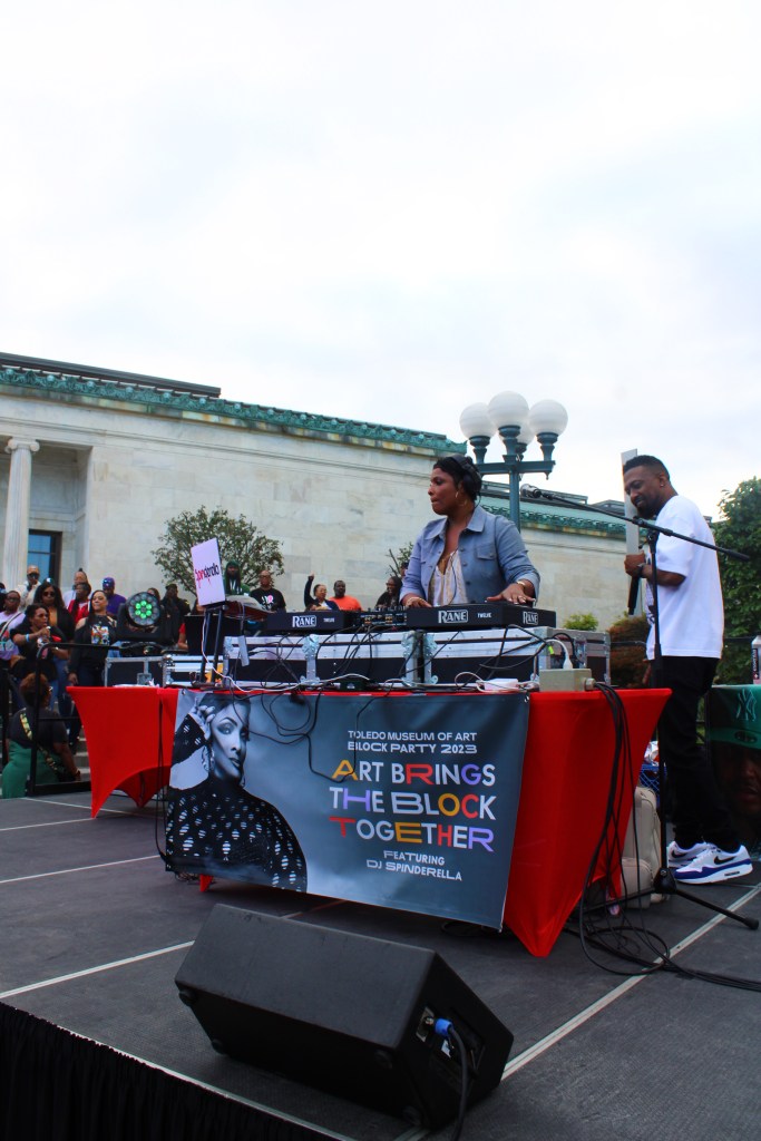 If you missed the Toledo Museum of Art Block Party on September 9, 2023, you missed a lot of fun. The annual event, which is free and open to the public, attracted thousands of people to the museum grounds and galleries for a night of art, music, and entertainment. This year, the theme was 50 Years of Hip-Hop. The museum invited none other than DJ Spinderella, Grammy award-winning DJ, producer, rapper, and writer, who was part of the legendary group Salt-N-Pepa.