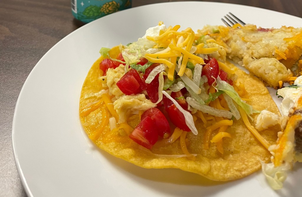 Loaded Scrambled Egg Tostadas: This recipe is a Mexican-inspired dish that features crispy corn tortillas topped with scrambled eggs, cheese, black beans, salsa, avocado, and sour cream. It takes about 20 minutes to make and serves 4 people.