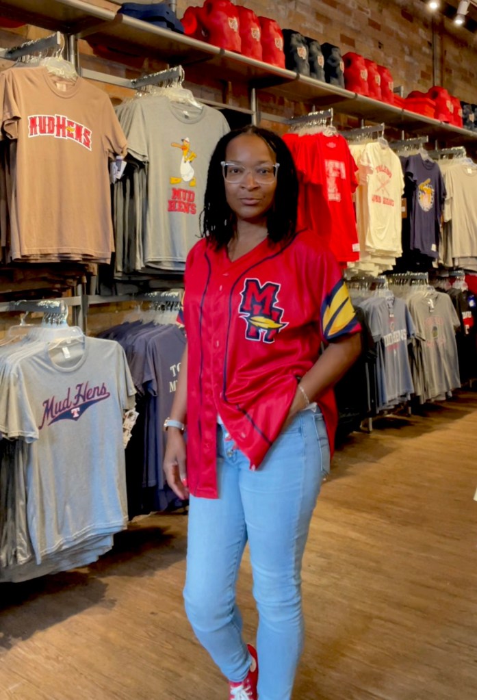 From retro jerseys to statement fan gear, I tried on some of the Swamp Shop’s best pieces, and I’ve rounded them all up for you below—complete with links so you can shop the looks yourself! Whether you’re headed to the game or just want to rep the Mud Hens in everyday life, these picks are full of style and team pride.